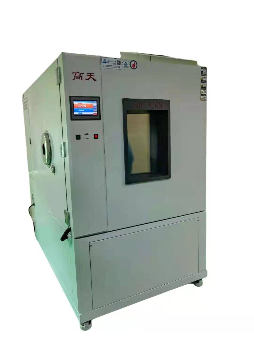 恒定高低溫試驗箱試驗室結構設計合理,配套產品和功能元器件具有專業的技術,能夠適應長期、穩定、安全、可靠的生產需求。能夠滿足用戶為從事上述用途的加工生產要求,且使用、操作、維修方便,使用壽命長,造型美觀,有良好的用戶界面,使用戶的操作和監測都更加簡單和直觀。(湖北高天)采用4.風力恒溫系統;風力管道系統符合《通風與空調工程施工質量驗收規范》GB50243-2002標準,通常采用循環系統、加熱系統和超溫排風系統組成。循環系統、超溫排風系統、加熱系統及配套的風道系統部分循環系統采用循環風機和配套風管進行循環,可保證測試區內溫度勻,加熱系統采用電熱器加熱,加熱器放置于老化房頂上循環風道中,四周加防火隔熱材料。采用PID溫度模塊控制,溫度到達產品所需要溫度后根據室內溫度波動自動調節加熱器功率大小配合保溫庫板的保溫性,使室內溫度精確穩定在所設定溫度數值可在指定的時間內內將室溫加至設定度,當溫度升至設定值時加熱器停止加熱.加熱器具有過熱保護裝置。用低噪音風機排風,循環控溫過程:當開機時加熱器開始加熱 溫度到達設定值時加熱器停止加熱,在老化產品的過程中始終保持循環狀態,以保證溫度均衡。整套系統動作具有性能穩定,控制精確、溫度波動小,均衡度高、噪音小等特點。