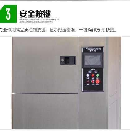 1、三箱設(shè)備區(qū)分為:高溫區(qū)、低溫區(qū)、試驗(yàn)區(qū)三部分 ,測試產(chǎn)品置于測試區(qū),沖擊時(shí)高溫區(qū)或低溫區(qū)的溫度沖擊入測試區(qū)進(jìn)行沖擊,測試產(chǎn)品為態(tài)式 ;