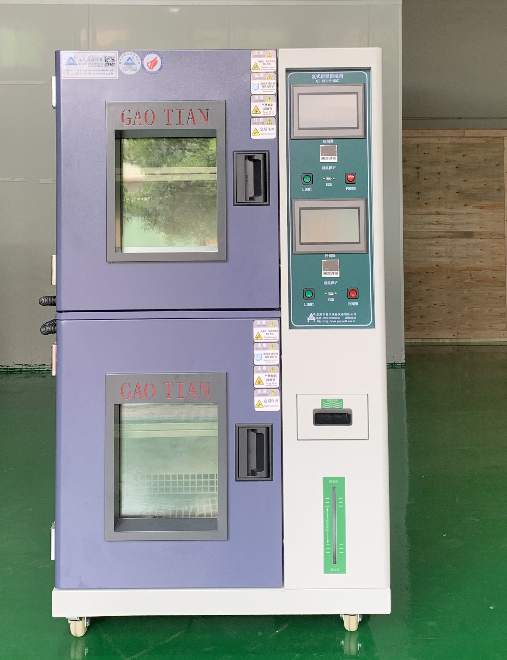 復疊式高低溫試驗箱 原理:以R404A 和R23 為制冷劑的復疊制冷機組,不但滿足了制取- 80 ℃的低溫要求,還具有環保的。